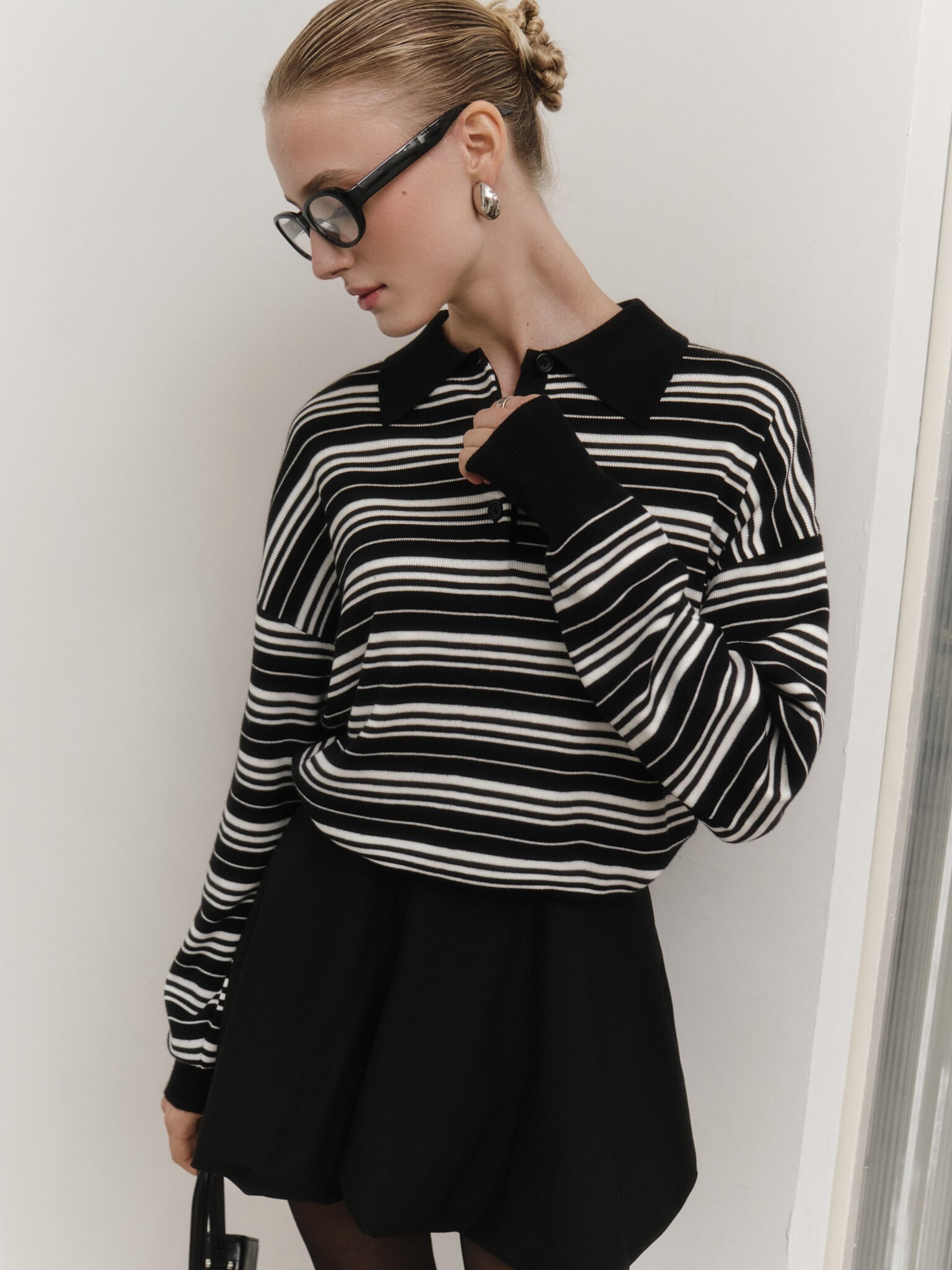 Трикотажное поло в полоску с длинными рукавами :: LICHI