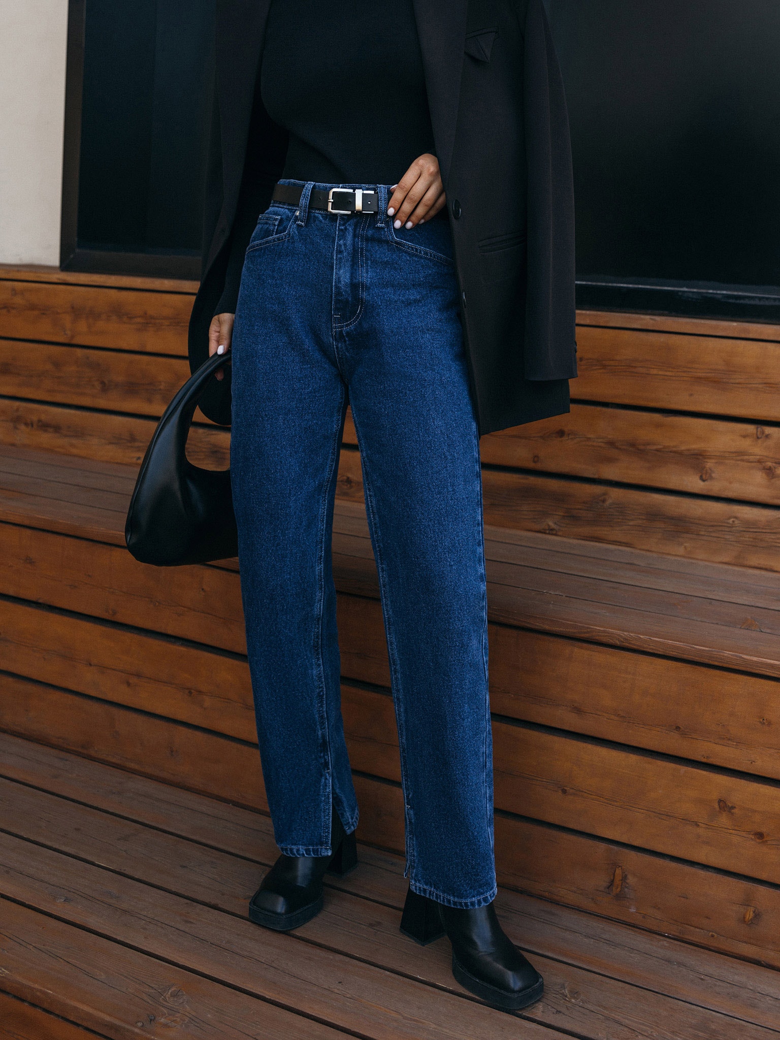 Прямые джинсы на средней посадке с разрезами :: LICHI