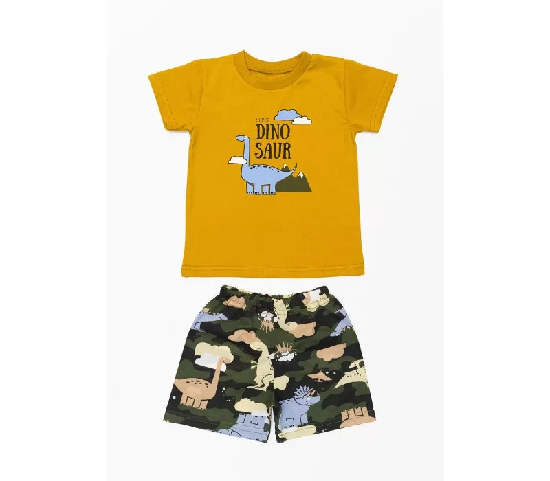 Комплект Летний для Мальчика Футболка с Принтом Дино и Шорты Кулир Рост