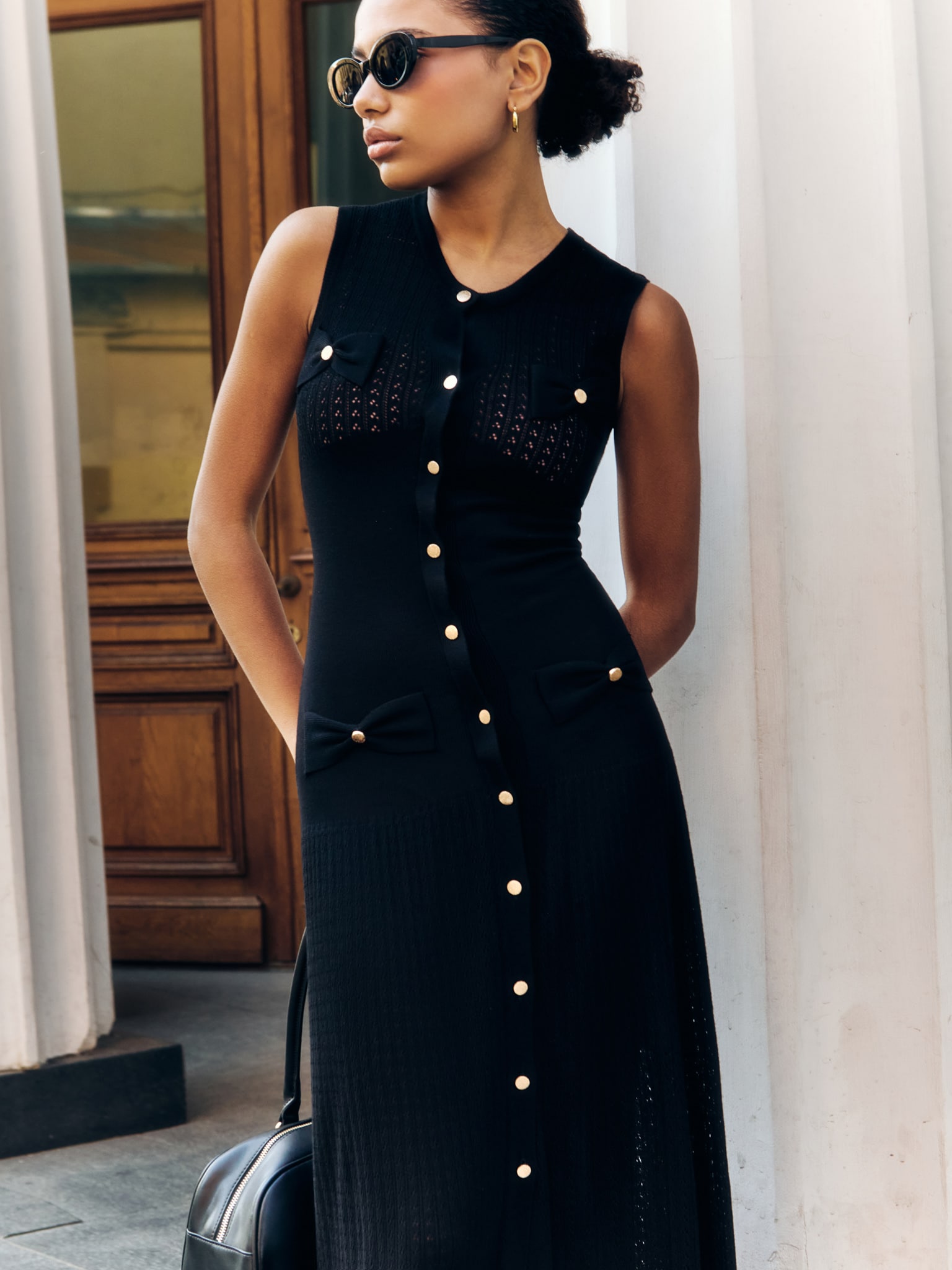 Платье макси из вязаного трикотажа с золотистыми пуговицами :: LICHI