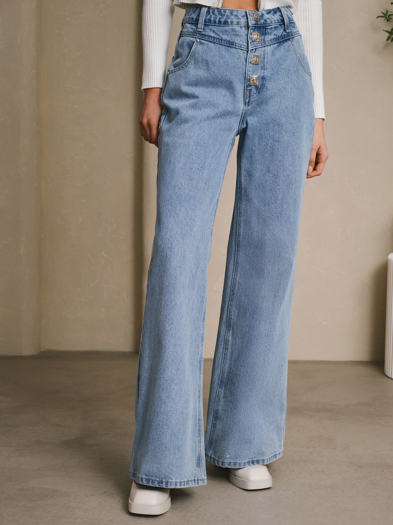 Джинсы на высокой посадке с металлической застежкой :: LICHI